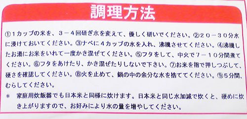 - 日本のお米同様、炊飯器で炊く事もできます。その際も塩や油を入れるのがお勧めです。